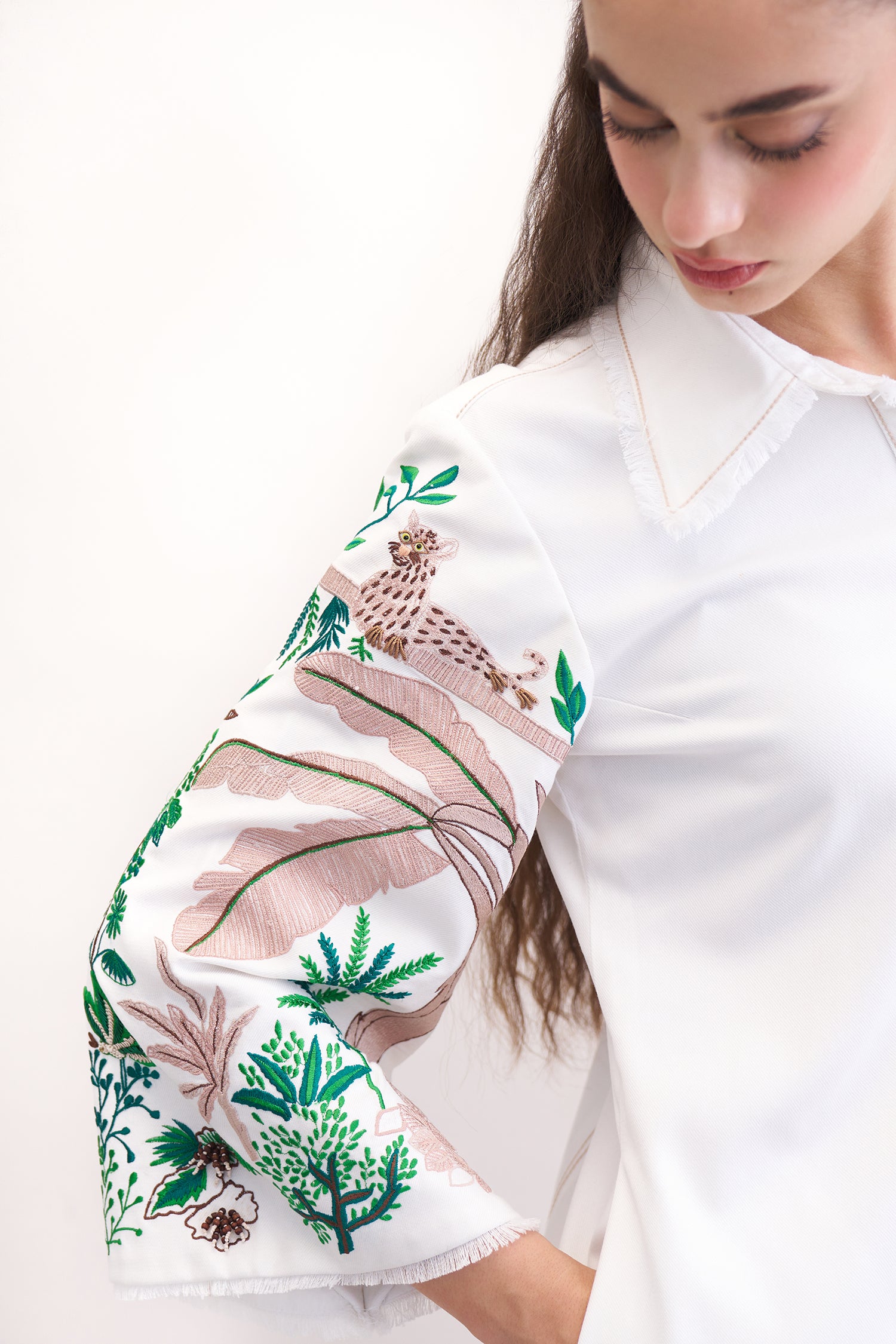 GRASSLAND WHITE DENIM EMBROIDERED DRESS